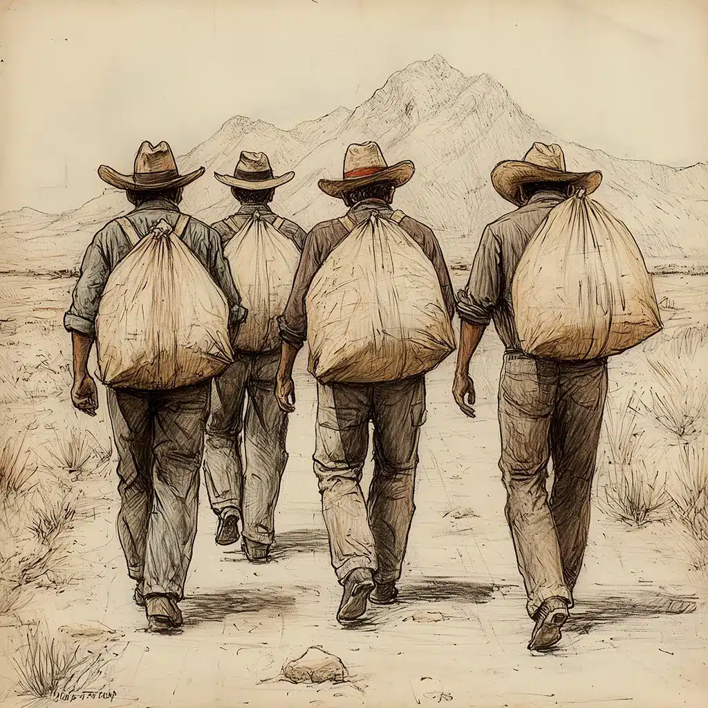 Os trechos de textos no parágrafo acima são do conto “Nos han dado la tierra”, de Juan Rulfo, cujo relato é a longa jornada dos camponeses mexicanos em direção a uma “terra prometida” pelos governos reformistas, que sucederam a Revolução de 1910. Neste caminhar, a maioria das gentes deserdadas do campo se dirigiam para receber as poucas terras, fracas, desérticas, sedentas das chuvas que viriam dos picos nevados das montanhas.